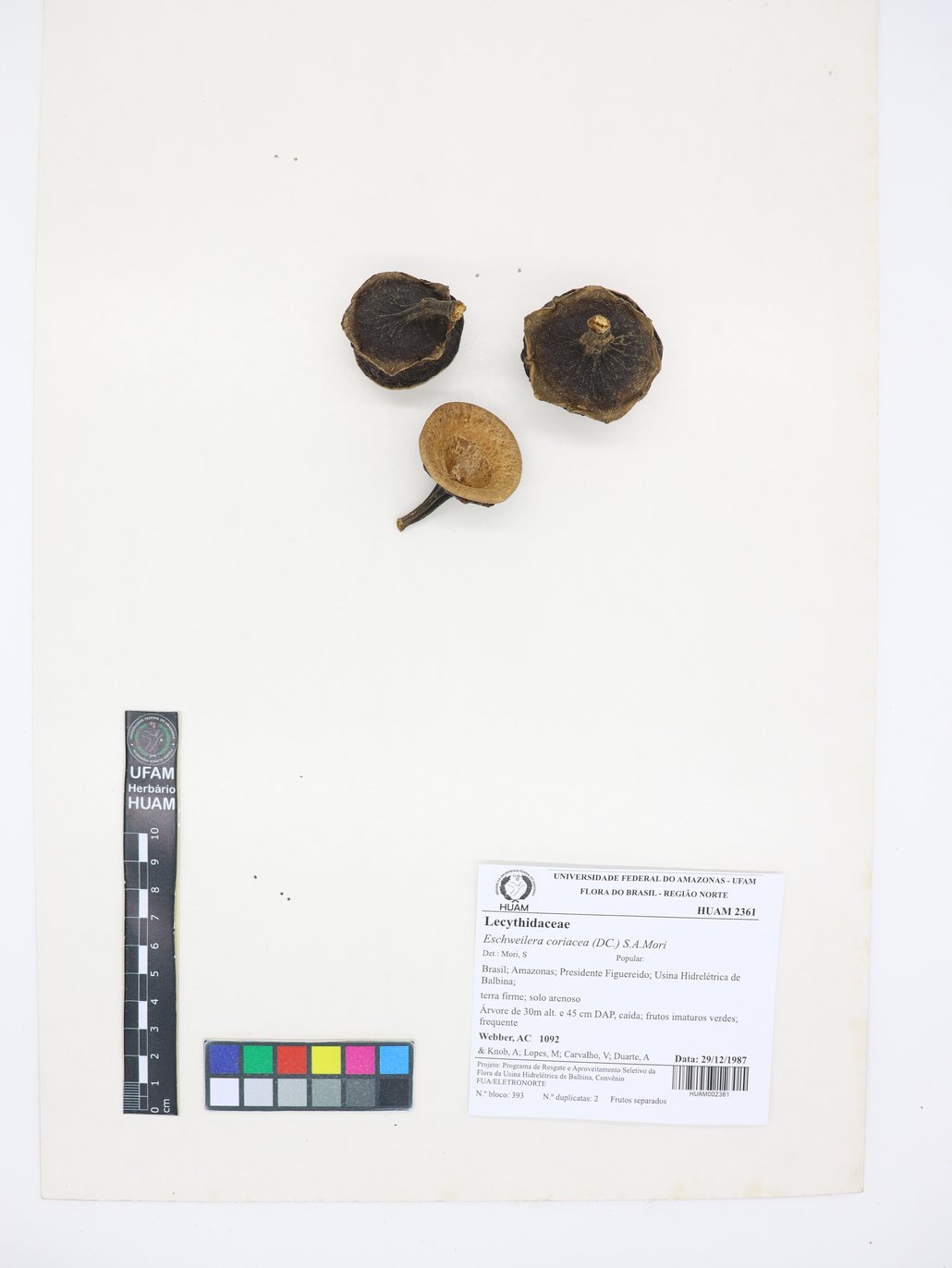 Espécie de dossel, com indivíduos superiores a 35m, com sapopemas, fuste reto e cilíndrico, casca fibrosa, fina e persistente. Madeira dura e pesada (0,90 a 1,0 g/cm3); cerne castanho claro amarelado, alburno amarelado; textura média; grã direita; superfície lisa ao tato; brilho pouco acentuado; cheiro e gosto imperceptíveis.